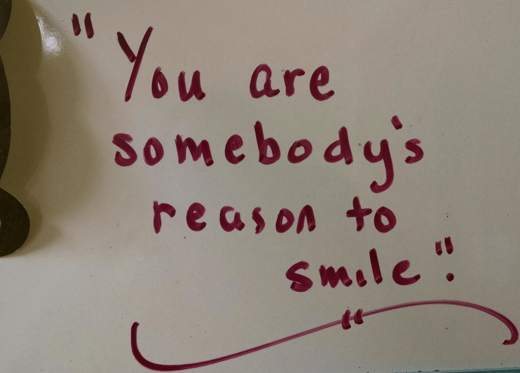 A teacher wrote this on her whiteboard at my children’s school: